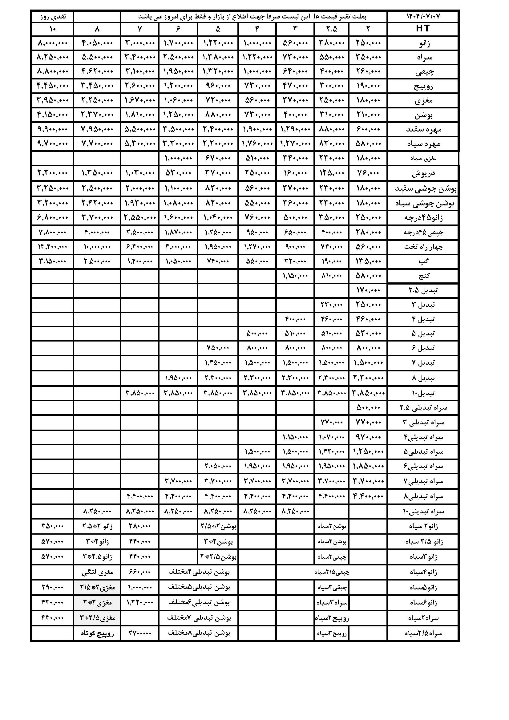 این لیست قیمت به صورت موقت میباشد و احتمال تغییر مجدد لیست قیمت وجود دارد